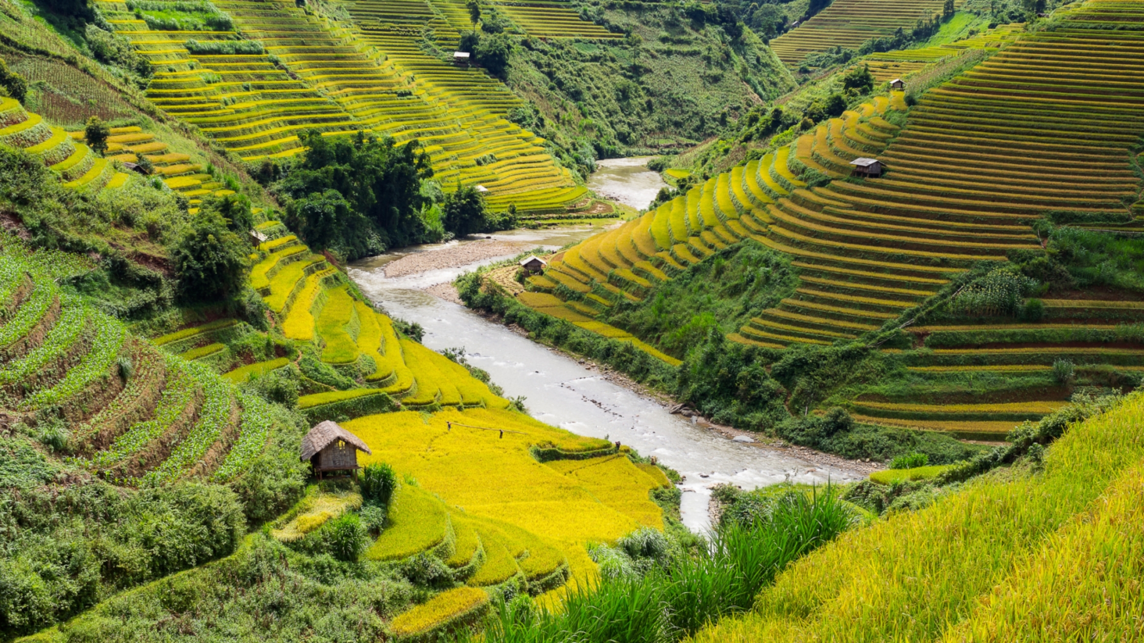 The terraced fields are beginning to turn golden